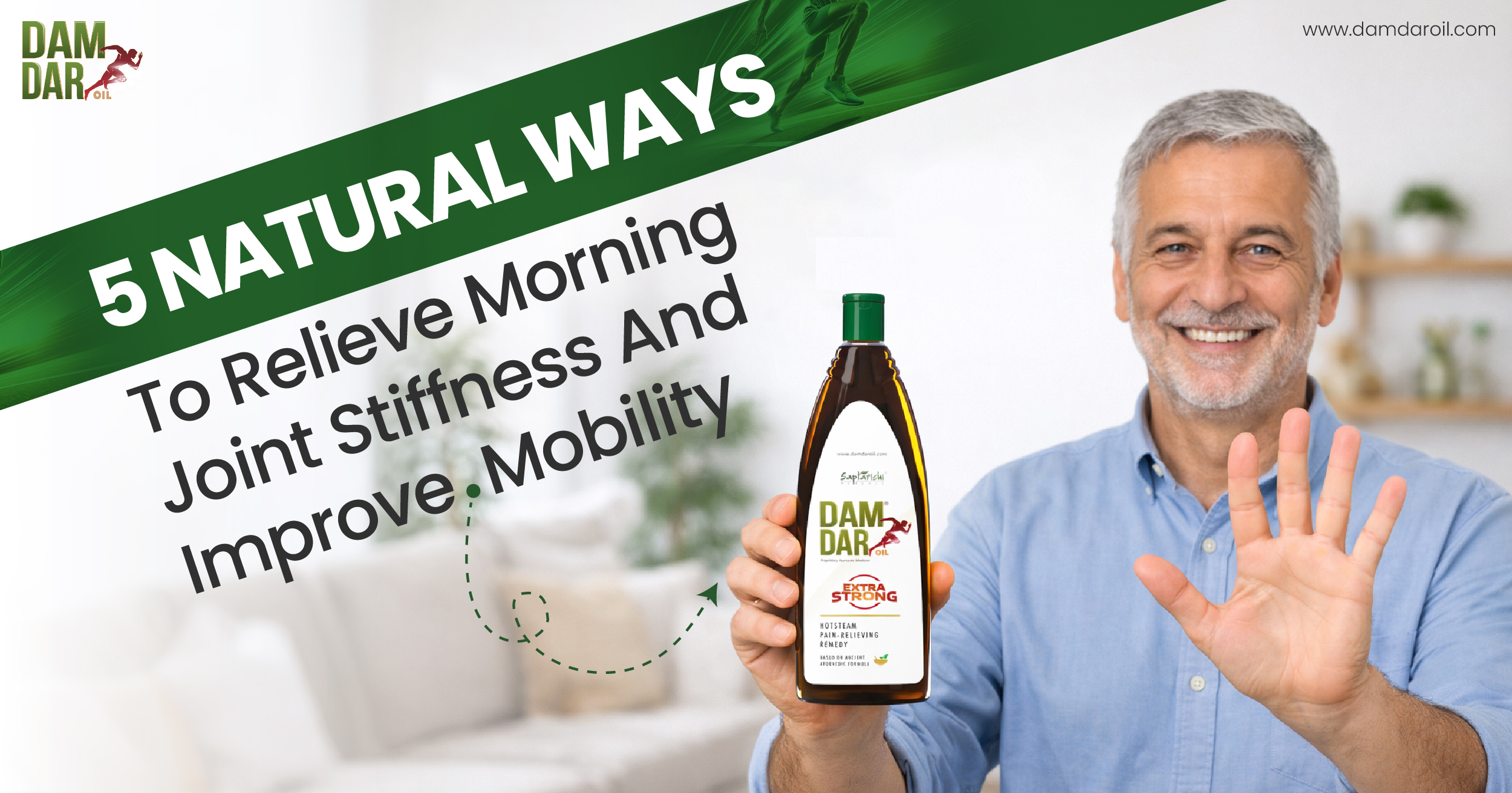 To greet the day without any joint pain or stiffness, start using a warming ayurvedic oil like Damdar oil, which uses “Hotsteam” to relax tight muscles and joints. With this, add light stretching, a magnesium rich diet, and enough hydration to flush out joint inflammation and stiffness causing toxins from your system.